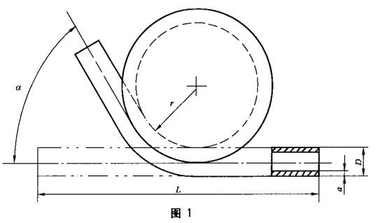 將一根全截面的金屬直管繞著一個(gè)規(guī)定半徑和帶槽的彎心彎曲,直至彎曲角度達(dá)到相關(guān)產(chǎn)品標(biāo)準(zhǔn)所規(guī)定的值(見(jiàn)圖1)